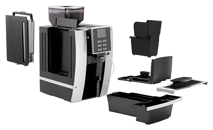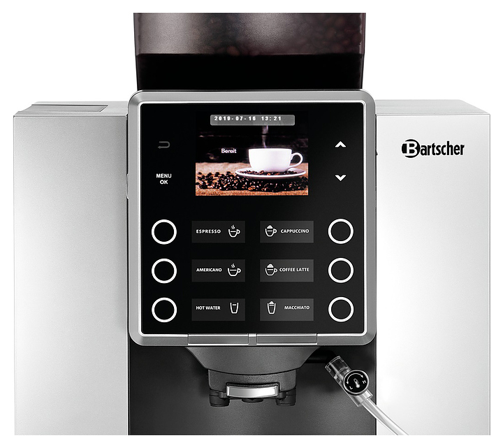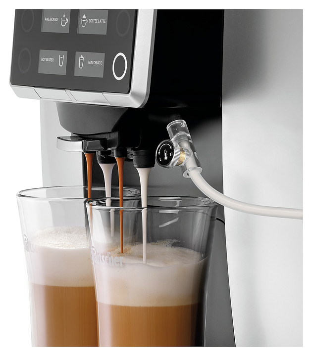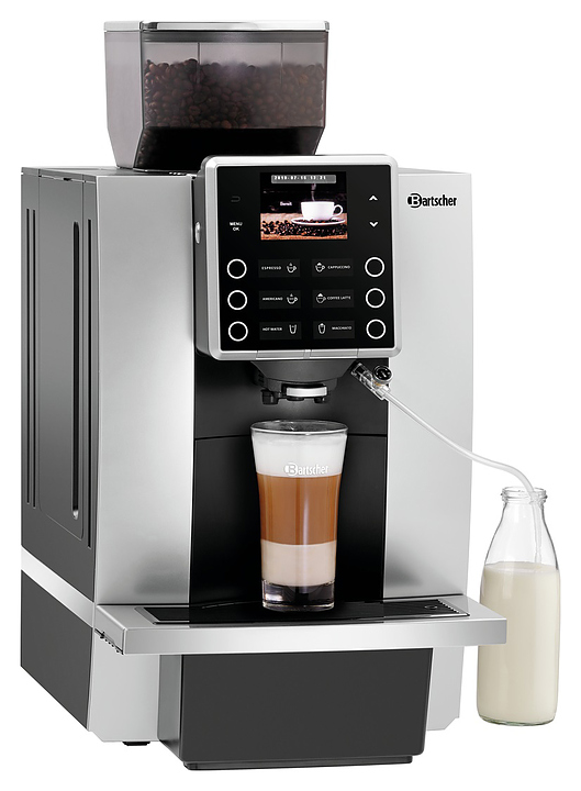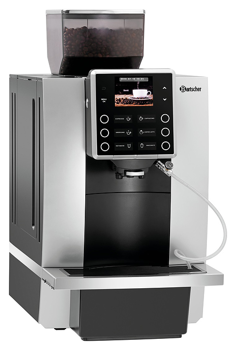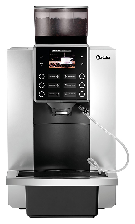 Автоматическая кофемашина Bartscher KV1 Classic предназначена для приготовления эспрессо, капучино, латте, макиато и других кофейных напитков в кофейнях, барах, ресторанах, комнатах приема пищи и офисах. Модель оснащена электронным управлением. Корпус выполнен из пластика, измельчитель - из стали. В комплект поставки входят 3 шланга: для подачи молока 50 см, для подачи молока с регулятором расхода 50 см и подачи воды 150 см. Для давления воды 3 бар и выше требуется редуктор давления.(приобретается отдельно) Особенности:
