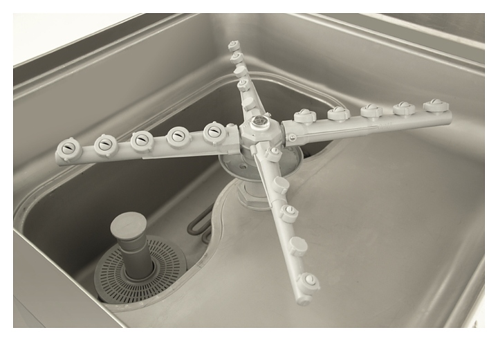 Посудомоечная машина OZTI OBM 1080M PDRT используется для мойки в кассетах тарелок, чашек и столовых приборов с применением жидких моющих и ополаскивающих средств на предприятиях общественного питания и торговли. Модель оснащена электромеханической панелью управления. Корпус, бойлер, моечная ванна и фильтр моечного бака выполнены из высококачественной нержавеющей стали, моечные рукава – из армированного полипропилена. Особенности: