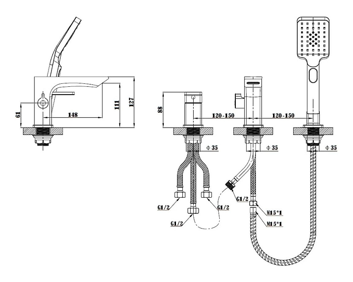 Смеситель для ванны с душем ESKO Samara SMR355