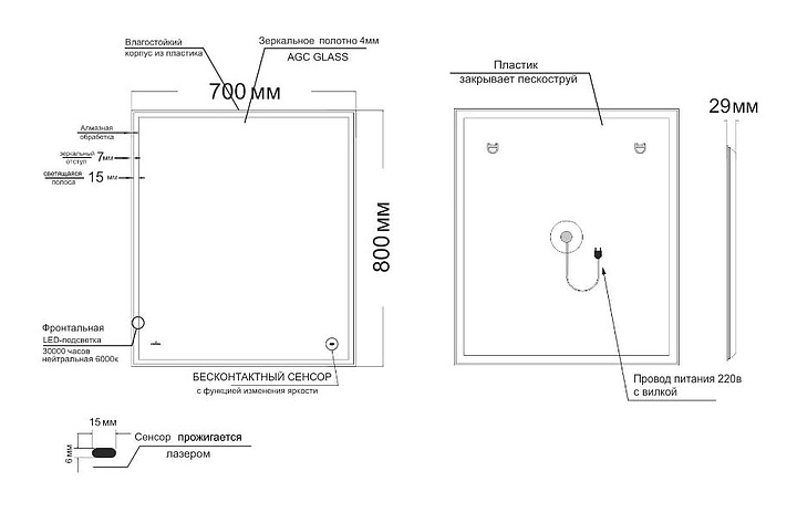 Зеркало Mixline Велес выполнено в современном стиле и прекрасно дополнит интерьер любой ванной комнаты. Благодаря подвесной конструкции модель не занимает много места, что позволяет экономить пространство в ванной комнате. Светодиодная лента обеспечивает яркое свечение по периметру зеркала. Корпус выполнен из прочного ABS-пластика, защищающего от влаги и механических повреждений.