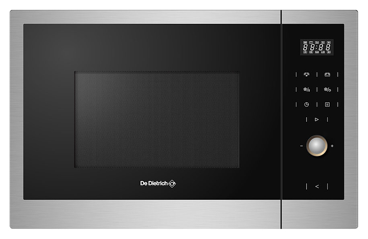 Микроволновая печь De Dietrich DMG2121X предназначена для приготовления, подогрева готовых блюд, а также для размораживания полуфабрикатов в частных домах, квартирах, отелях и офисах. Модель оснащена электронной панелью управления с дисплеем, таймером и дверцей. Особенности: