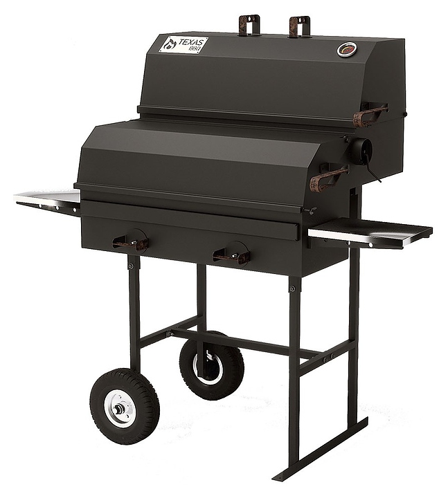 Гриль-коптильня Vesta TEXAS BBQ предназначен для горячего и полугорячего копчения, прямого и косвенного гриллинга продуктов и полуфабрикатов, для запекания больших кусков мяса, а также приготовления плова на предприятиях общественного питания и торговли, в частных и загородных домах. Модель оснащена дополнительными рабочими столиками по бокам корпуса. Корпус и колосниковая решетка выполнены из котельной стали. Комплектация: