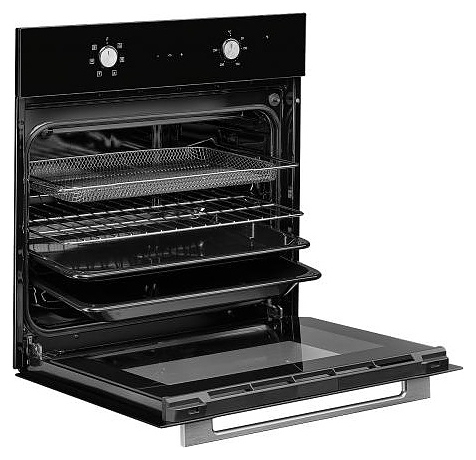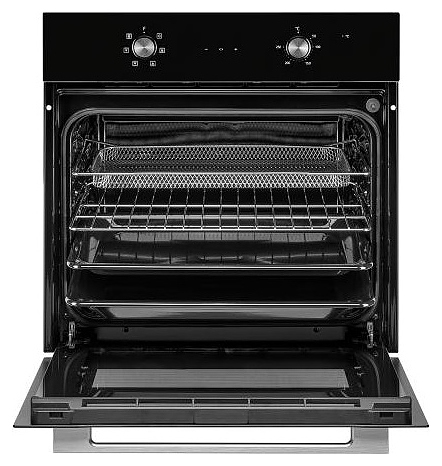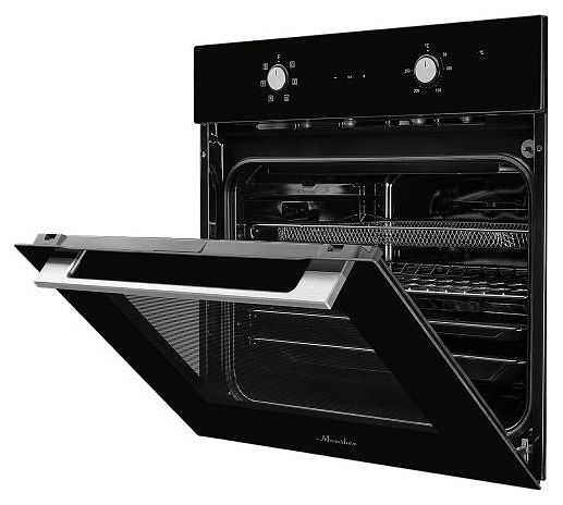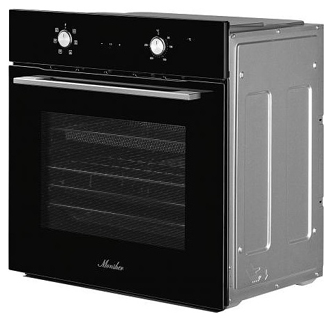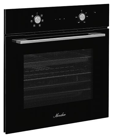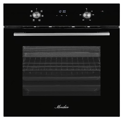 Электрический духовой шкаф Monsher MOE 6162 Noir предназначен для приготовления большого ассортимента блюд в домашних условиях. Модель оснащена камерой с расположенным в задней стенке вентилятором, верхним и нижним нагревательными элементами, верхним грилем, 2 боковыми стойками с 5 уровнями направляющих для противней, откидной дверью со смотровым окном и уплощенной горизонтальной рукояткой, кабелем питания, электромеханической панелью управления с 2 цилиндрическими поворотными переключателями, сенсорными клавишами и светодиодным цифровым дисплеем с белой подсветкой индикации. Корпус выполнен из высококачественной стали, фронтальные панели черного цвета с полным остеклением без винтового крепежа, боковые стойки, направляющие и решетка для гриля с хромированным покрытием, фурнитура с серебристой поверхностью. В комплект поставки входят решетка для гриля, 2 противня: стандартный и глубокий, инструкция по эксплуатации и гарантийный талон. Особенности:
