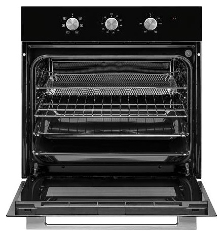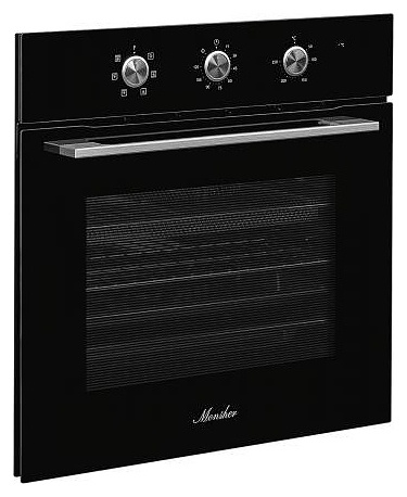 Электрический духовой шкаф Monsher MOE 6062 Noir предназначен для приготовления большого ассортимента блюд в домашних условиях. Модель оснащена камерой с расположенным в задней стенке вентилятором, верхним и нижним нагревательными элементами, верхним грилем, 2 боковыми стойками с 5 уровнями направляющих для противней, откидной дверью со смотровым окном и уплощенной горизонтальной рукояткой, кабелем питания и электромеханической панелью управления с 3 цилиндрическими поворотными переключателями. Корпус выполнен из высококачественной стали, фронтальные панели черного цвета с полным остеклением без винтового крепежа, боковые стойки, направляющие и решетка для гриля с хромированным покрытием, фурнитура с серебристой поверхностью. В комплект поставки входят решетка для гриля, 2 противня: стандартный и глубокий, инструкция по эксплуатации и гарантийный талон. Особенности: