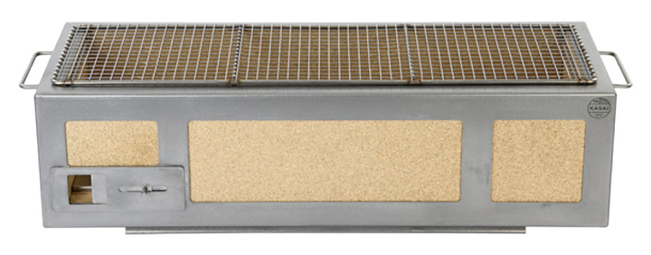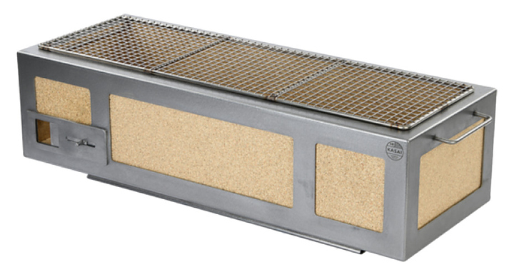 Японский гриль Kasai Long Konro предназначен для приготовления блюд на древесном угле в частных домах и на предприятиях общественного питания. Рама, ручки и решетка выполнены из нержавеющей стали, корпус - из огнеупорной керамики. В комплект поставки входит решетка для приготовления. Особенности:
