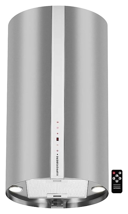 Пристенная кухонная вытяжка Kuppersberg VORTEX GW предназначена для очистки воздуха от продуктов горения, копоти и запахов в процессе приготовления пищи путем принудительной вентиляции в домашних условиях. Модель оснащена вентилятором с электродвигателем, 2 круглыми светильниками, сенсорной панелью управления с цифровым дисплеем и красной подсветкой индикации. Короб цилиндрической формы выполнен из стали с термостойким покрытием серебристого оттенка c декоративной вертикальной вставкой по центру с белой глянцевой поверхностью, фильтр – из алюминия, корпус пульта – из черного пластика. В комплект поставки входят беспроводной пульт дистанционного управления, набор монтажных креплений, антивозвратный клапан, адаптер воздуховода, инструкция по эксплуатации и гарантийный талон. Особенности: