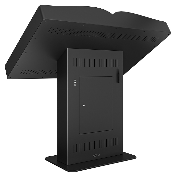 Интерактивный стол AxeTech Book Premium 55" используется для отображения информации в выставочных комплексах, современных офисах и государственных учреждениях. Модель имеет форму раскрытой книги и оснащена инфракрасной сенсорной рамкой на 20 одновременных касаний, Wi-Fi адаптером и встроенной аудиосистемой. Стол может быть дополнен информационным приложением или интерактивной книгой с эффектом пролистывания страниц. Механическая регулировка угла наклона дисплея гарантирует комфортное взаимодействие. Корпус выполнен из стали. Особенности: