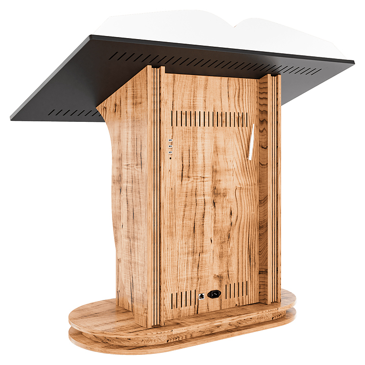 Интерактивный стол AxeTech Book Pro Start используется для отображения информации в выставочных комплексах и музеях. Модель имеет форму раскрытой книги и оснащена инфракрасной сенсорной рамкой на 10 одновременных касаний, Wi-Fi адаптером и встроенной аудиосистемой. Стол может быть дополнен информационным приложением или интерактивной книгой с эффектом пролистывания страниц. Корпус выполнен из МДФ и ЛДСП. Особенности:
