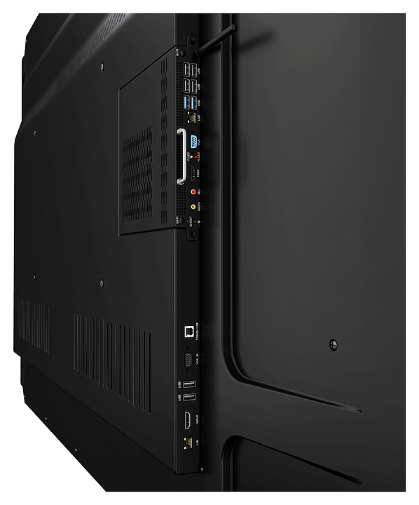 Интерактивная панель AxeTech Air Medium 2.0 используется для проведения уроков в школах, лекций в образовательных учреждениях, презентаций в конференц-залах, а также для информирования посетителей. Модель оснащена инфракрасной сенсорной рамкой на 20 одновременных касаний, Wi-Fi адаптером и встроенной аудиосистемой. Режим «Белая доска» позволяет писать на интерактивной области рукой разными цветами и толщиной кисти. Корпус выполнен из алюминия и стали. В комплект поставки входит настенное крепление. Дополнительные характеристики: