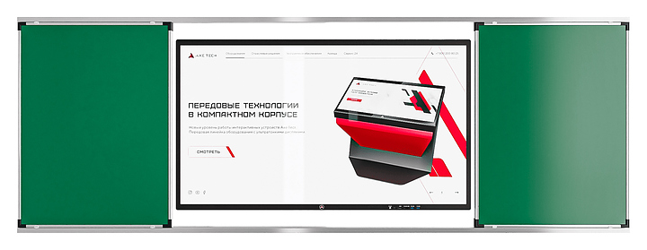 Интерактивная панель AxeTech Move Premium используется для проведения занятий в образовательных учреждениях. Модель оснащена инфракрасной сенсорной рамкой на 20 одновременных касаний, Wi-Fi адаптером и встроенной аудиосистемой. Режим «Белая доска» позволяет писать на интерактивной области рукой разными цветами и толщиной кисти. Модель совмещает работу со школьной доской и интерактивной, благодаря рельсовой системе классическая доска закрывает интерактивный дисплей. Корпус выполнен из алюминия и стали. В комплект поставки входит настенное крепление. Дополнительные характеристики: