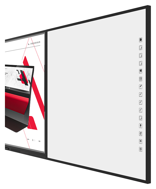 Интерактивная панель AxeTech Universe Start используется для проведения уроков в школах и лекций в образовательных учреждениях. Модель оснащена инфракрасной сенсорной рамкой на 20 одновременных касаний, Wi-Fi адаптером и встроенной аудиосистемой. Режим «Белая доска» позволяет писать на интерактивной области стилусом разными цветами и толщиной кисти. Вся написанная информация на меловой и маркерной досках моментально отображается на центральной интерактивной панели. Две доски обладают функциональными клавишами быстрого меню для работы с любыми текстовыми, аудио- и видеофайлами, создания заметок и презентаций, передачи документов через QR-код, записи голосового объяснения урока и перемещения между страницами. Корпус выполнен из алюминия и стали. В комплект поставки входят настенный кронштейн и 2 стилуса. Особенности: