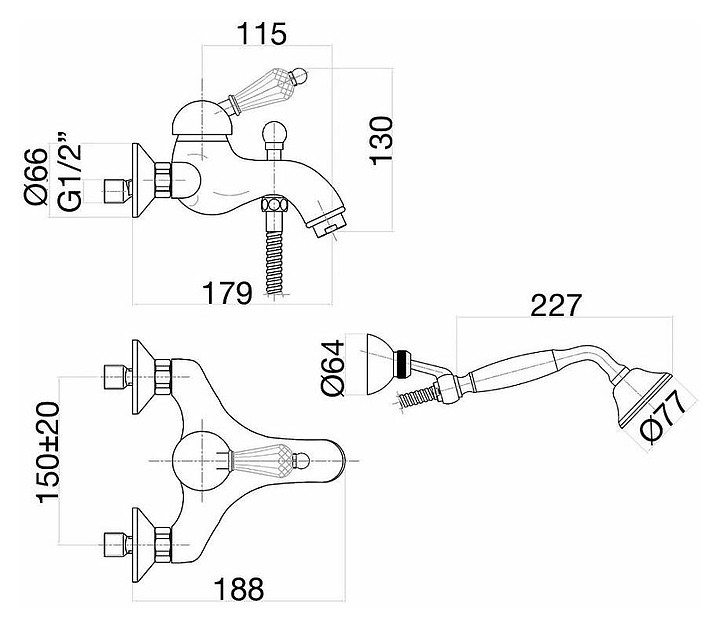 Смеситель Fiore Imperial-Sky (SWAROVSKI®) 82ZZ5104 используется для подачи и смешивания горячей и холодной воды в ванных комнатах. Модель оснащена душевым гарнитуром, включающим в себя однорежимный ручной душ и шланг с защитой от перекручивания, а также керамическим картриджем, обеспечивающим плавный ход рычага смесителя, контроль и точность при выборе напора и температуры воды. Однорычажный тип управления позволяет очень быстро и плавно регулировать подачу воды одной рукой. Изделие выполнено из высококачественной латуни, которая отличается прочностью, долговечностью и устойчивостью к перепадам температур. В комплект поставки входят смеситель, душевая лейка, настенный держатель лейки и шланг. Особенности: