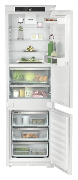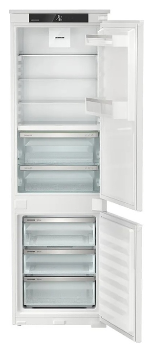 Встраиваемый холодильник Liebherr ICBNSd 5123серии Plus предназначен для охлаждения, замораживания, кратковременного и длительного хранения пищевых продуктов и напитков в гостиничных комплексах, офисах, а также домашних условиях. Модель оснащена холодильной камерой сверху и морозильной камерой снизу, правосторонними перенавешиваемыми распашными дверьми, кабелем питания с евровилкой, расположенными за дверью холодильной камеры в верхней части фронта сенсорной панелью управления и монохромным жидкокристаллическим дисплеем с белой подсветкой индикации. Боковины и двери выполнены из стали, внутренняя облицовка камер – из белого пластика, плоские полки – из прозрачного закаленного стекла, ящики и навесные полки – из белого пластика с прозрачным фронтом, ящики и полки декорированы окантовками серебристого оттенка, сухая задняя панель – из пластика, упаковка – из гофрокартона, полимерной пленки и полистирола.