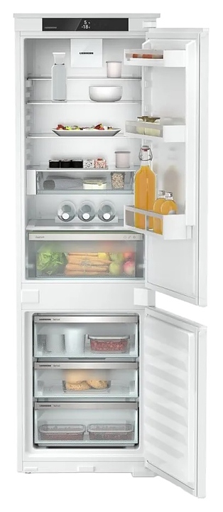Встраиваемый холодильник Liebherr ICNSd 5123серии Plus предназначен для охлаждения, замораживания, кратковременного и длительного хранения пищевых продуктов и напитков в гостиничных комплексах, офисах, а также домашних условиях. Модель оснащена холодильной камерой сверху и морозильной камерой снизу, правосторонними перенавешиваемыми распашными дверьми, кабелем питания с евровилкой, расположенными за дверью холодильной камеры в верхней части фронта сенсорной панелью управления и монохромным жидкокристаллическим дисплеем с белой подсветкой индикации. Боковины и двери выполнены из стали, внутренняя облицовка камер – из белого пластика, плоские полки – из прозрачного закаленного стекла, ящики и навесные полки – из белого пластика с прозрачным фронтом, ящики и полки декорированы окантовками серебристого оттенка, упаковка – из гофрокартона, полимерной пленки и полистирола.
