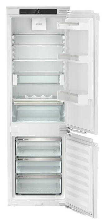 Встраиваемый холодильник Liebherr ICc 5123серии Plus предназначен для охлаждения, замораживания, кратковременного и длительного хранения пищевых продуктов и напитков в гостиничных комплексах, офисах, а также домашних условиях. Модель оснащена холодильной камерой сверху и морозильной камерой снизу, правосторонними перенавешиваемыми распашными дверьми, кабелем питания с евровилкой, расположенными за дверью холодильной камеры в верхней части фронта сенсорной панелью управления и монохромным жидкокристаллическим дисплеем с белой подсветкой индикации. Боковины и двери выполнены из стали, внутренняя облицовка камер – из белого пластика, плоские полки – из прозрачного закаленного стекла, ящики и навесные полки – из белого пластика с прозрачным фронтом, ящики и полки декорированы окантовками серебристого оттенка, упаковка – из гофрокартона, полимерной пленки и полистирола.