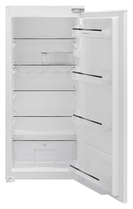 Встраиваемый холодильник De Dietrich DRL1247ES предназначен для охлаждения, замораживания, кратковременного и длительного хранения пищевых продуктов и напитков в гостиничных комплексах, офисах, а также домашних условиях. Модель оснащена холодильной камерой с правосторонней перенавешивамой распашной дверью, кабелем питания с евровилкой и расположенной на потолке холодильной камеры электромеханической панелью управления. Боковины выполнены из стали с антикоррозийным покрытием белого цвета, внутренняя облицовка камер – из белого пластика, плоские полки – из прозрачного безопасного закаленного стекла, ящик и навесные полки – из прозрачного пластика, решетчатая полка с хромированной поверхностью, ящик и полки декорированы окантовками серебристого оттенка. Комплектация: