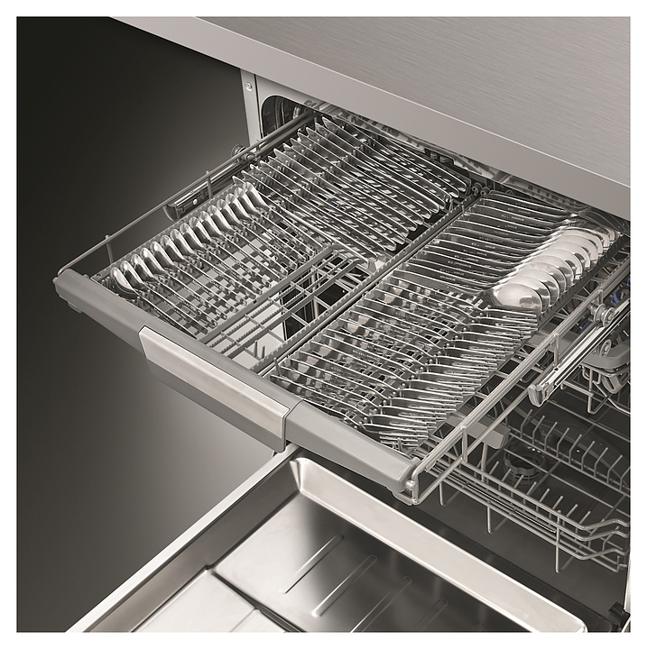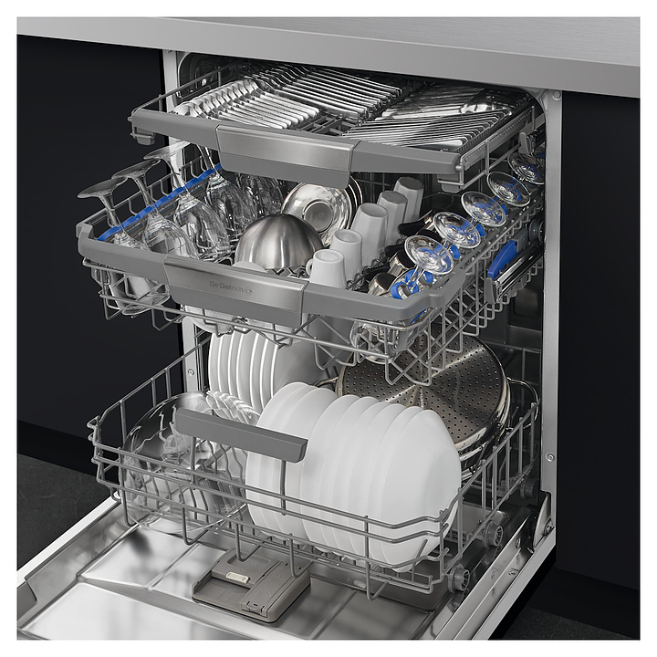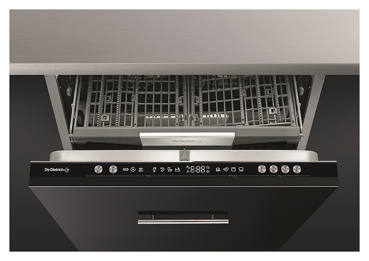 Встраиваемая посудомоечная машина De Dietrich DCJ434DBпредназначена для гигиенической обработки и последующей сушки различной посуды на предприятиях общественного питания, в гостиничных комплексах и домашних условиях. Модель оснащена камерой с откидной дверью с горизонтальной рукояткой, верхним и нижним моечными рукавами, дозаторами моющих и ополаскивающих средств, устройством умягчения воды, кабелем питания с евровилкой (Shuko), расположенной на верхнем торце двери панелью управления с функциональными нажимными клавишами, светодиодными сигнальными лампами и цифровым дисплеем с белой подсветкой индикации. Внутренняя облицовка камеры выполнена из высококачественной нержавеющей стали, панель управления – из полимера черного цвета, фронт с покрытием черного цвета, рукоятка с поверхностью серебристого оттенка Платина.