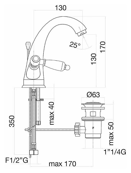 Смеситель Fiore Coloniale 02ZZ0623 используется для подачи и смешивания горячей и холодной воды в ванных и туалетных комнатах. Модель оснащена керамической кран-буксой, обеспечивающей плавный ход вентилей и бесшумное смешивание воды, а также аэратором для создания мягкой ровной струи без разбрызгивания. Изделие выполнено из высококачественной латуни, которая отличается прочностью, долговечностью и устойчивостью к перепадам температур. В комплект поставки входят смеситель, донный клапан и подводка. Особенности: