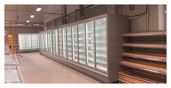 Горка холодильная KIFATO ПРАГА 2500 (встроенный агрегат, распашные двери, зеркальные боковины)