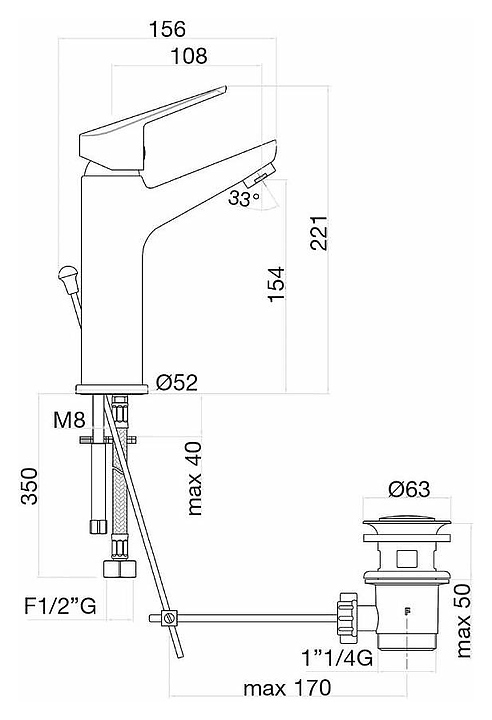 Смеситель Fiore Kyro 86CR8112 используется для подачи и смешивания горячей и холодной воды в ванных и туалетных комнатах. Модель оснащена керамическим картриджем, обеспечивающим плавный ход рычага смесителя, контроль и точность при выборе напора и температуры воды, а также аэратором для создания мягкой ровной струи без разбрызгивания. Изделие выполнено из высококачественной латуни, которая отличается прочностью, долговечностью и устойчивостью к перепадам температур. В комплект поставки входят смеситель, донный клапан и подводка. Особенности: