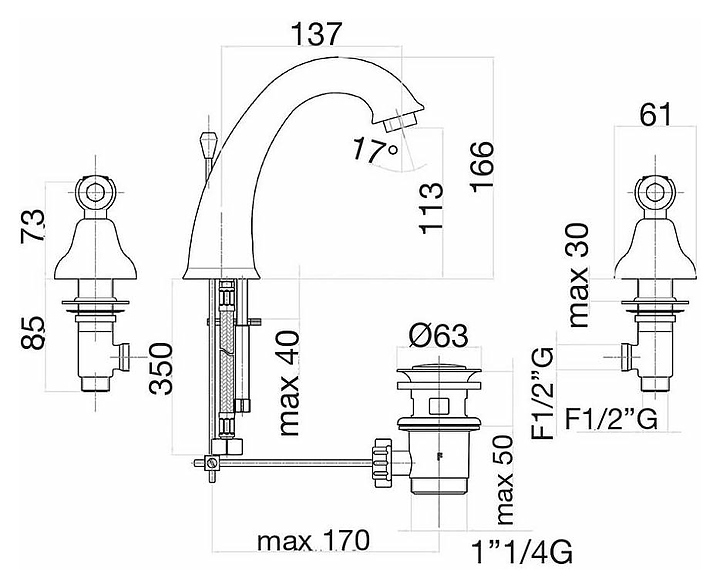 Смеситель для раковины Fiore Coloniale 02CR0628 хром