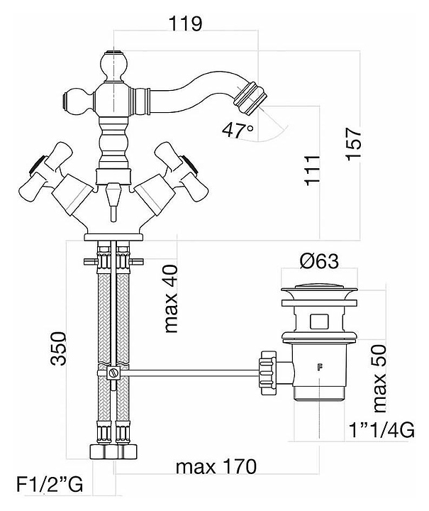 Смеситель для биде Fiore Margot 26CR0635 используется для подачи и смешивания горячей и холодной воды в туалетных комнатах. Модель оснащена керамической кран-буксой, обеспечивающей плавный ход вентилей и бесшумное смешивание воды, а также аэратором для создания мягкой ровной струи без разбрызгивания. Изделие выполнено из высококачественной латуни, которая отличается прочностью, долговечностью и устойчивостью к перепадам температур. В комплект поставки входят смеситель, донный клапан и подводка. Особенности: