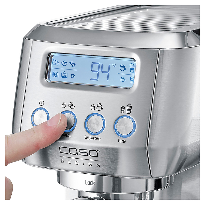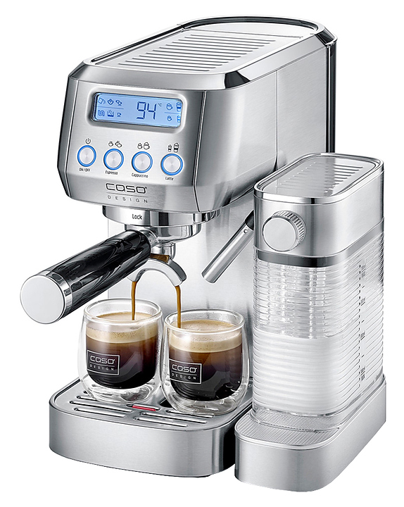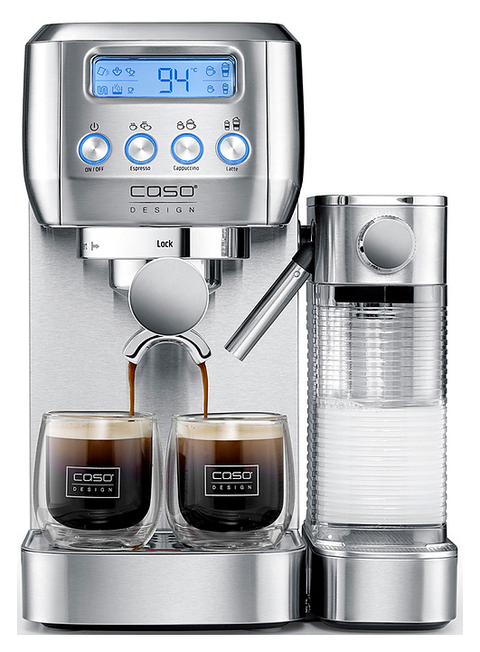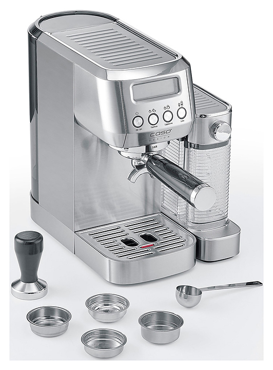 Кофеварка CASO Espresso Gourmet Latte используется в отелях, офисах, частных домах и квартирах для приготовления эспрессо, капучино, латте маккиато и других кофейных напитков на основе эспрессо. Модель оснащена ЖК-панелью управления, портафильтром, встроенным контейнером для молока, встроенным держателем для чашек с подогревом и съемным резервуаром для воды. Корпус, ложка, портафильтры выполнены из нержавеющей стали, тампер - из металла, ручка тампера - из дерева. В комплект поставки входят ложка, тампер, 2 двухстенные и 2 одностенные корзины портафильтра на 1 и 2 чашки, корзина фильтра, насадки ESE и портафильтр. Особенности: