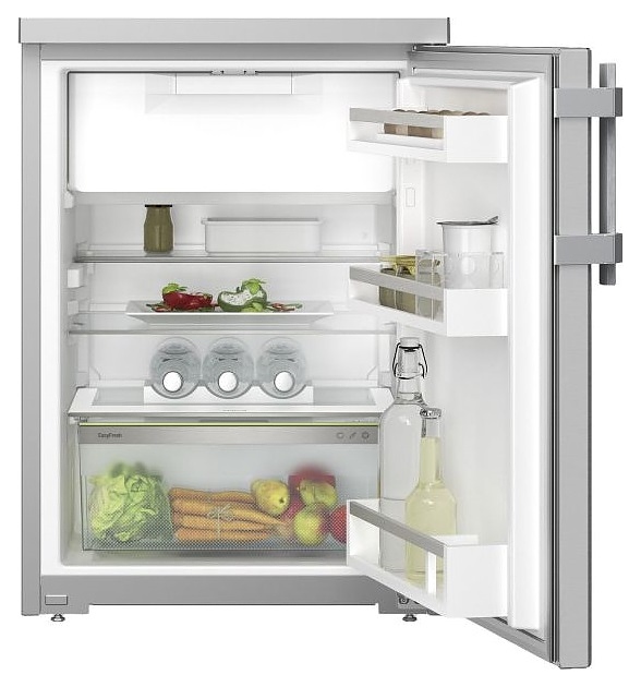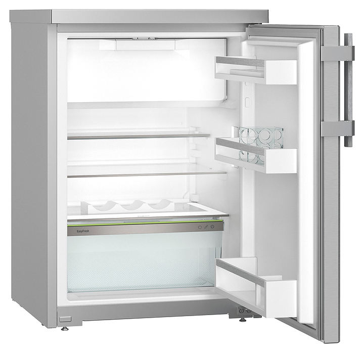 Холодильник Liebherr Rsdci 1621серии Plus предназначен для охлаждения, замораживания, кратковременного и длительного хранения пищевых продуктов и напитков в гостиничных комплексах, офисах, а также домашних условиях. Модель оснащена холодильной камерой c интегрированной в нее сверху морозильной камерой, правосторонней перенавешиваемой распашной дверью, кабелем питания с евровилкой, расположенными внутри холодильной камеры панелью управления с функциональными клавишами и светодиодными индикаторами. Боковины выполнены из стали с лакированным покрытием серебристого оттенка, двери – из нержавеющей стали с горизонтальной шлифовкой и шелковистой текстурой поверхности с покрытием SmartSteel серебристого оттенка, внутренняя облицовка камеры – из белого пластика, плоские полки – из прозрачного закаленного стекла, навесные полки и ящик – из белого пластика с прозрачным фронтом, решетчатая полка с хромированной поверхностью, ящик и полки декорированы окантовками серебристого оттенка, упаковка – из гофрокартона, полимерной пленки и полистирола.