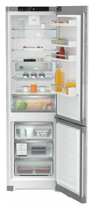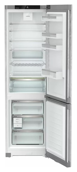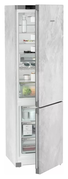 Холодильник Liebherr CNpcd 5723 серии Plus предназначен для охлаждения, замораживания, кратковременного и длительного хранения пищевых продуктов и напитков в гостиничных комплексах, офисах, а также домашних условиях. Модель оснащена холодильной камерой сверху и морозильной камерой снизу, правосторонними перенавешиваемыми распашными дверьми, кабелем питания с евровилкой, расположенными за дверью холодильной камеры в верхней части фронта сенсорной панелью управления и монохромным жидкокристаллическим дисплеем с белой подсветкой индикации. Боковины и двери выполнены из стали с покрытием в серых тонах особыми чернилами методом струйной ультрафиолетовой печати, внутренняя облицовка камер – из белого пластика, плоские полки – из прозрачного закаленного стекла, ящики – из белого пластика с прозрачным фронтом, навесные полки – из белого пластика, ящики и полки декорированы окантовками серебристого оттенка, упаковка – из гофрокартона, полимерной пленки и полистирола.