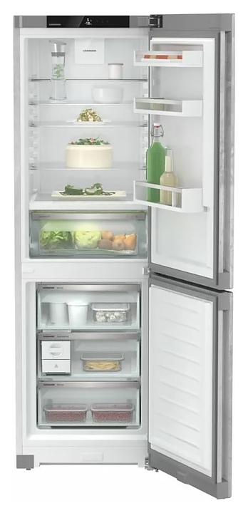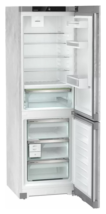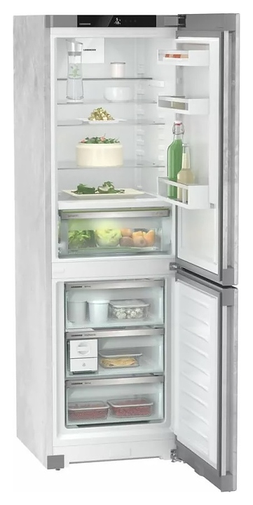 Холодильник Liebherr CBNpcd 5223 серии Plus предназначен для охлаждения, замораживания, кратковременного и длительного хранения пищевых продуктов и напитков в гостиничных комплексах, офисах, а также домашних условиях. Модель оснащена холодильной камерой сверху и морозильной камерой снизу, правосторонними перенавешиваемыми распашными дверьми, кабелем питания с евровилкой, расположенными за дверью холодильной камеры в верхней части фронта сенсорной панелью управления и монохромным жидкокристаллическим дисплеем с белой подсветкой индикации. Боковины и двери выполнены из стали с покрытием в серых тонах особыми чернилами методом струйной ультрафиолетовой печати, внутренняя облицовка камер – из белого пластика, плоские полки – из прозрачного закаленного стекла, ящики и навесные полки – из белого пластика с прозрачным фронтом, ящики и полки декорированы окантовками серебристого оттенка, сухая задняя панель – из пластика, упаковка – из гофрокартона, полимерной пленки и полистирола.