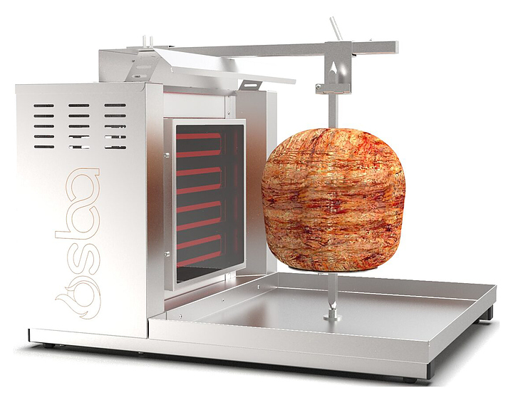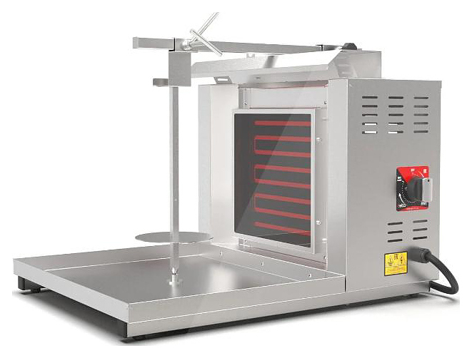 Электрический гриль Osba SH1-C предназначен для обжарки большого количества различных видов мяса и птицы при приготовлении начинки для шаурмы, донера и других блюд на предприятиях общественного питания и торговли. Размещение на вертикальном вертеле и ручное управление вращением обеспечивают равномерное приготовление. Модель оснащена защитным козырьком и 1 зоной нагрева с плавной регулировкой мощности. Покрытие на нагревательных элементах гарантирует легкую очистку. Перемещение вертела вперед и назад позволяет регулировать расстояние между мясом и нагревом при разном количестве заготовки. Корпус выполнен из пищевой нержавеющей стали, которая отличается прочностью и долговечностью, защита нагревателей - из жаростойкой стеклокерамики.