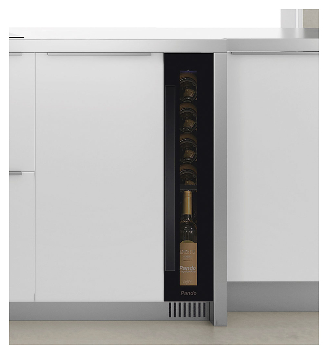 Винный шкаф Pando PVZB 15-9 CRL предназначен для хранения при оптимальных условиях и предпродажной демонстрации бутилированного вина различных сортов в барах, ресторанах, специализированных магазинах, подсобных складских помещениях, а также домашних условиях. Модель оснащена монотемпературной холодильной камерой с левосторонней распашной дверью, вертикальной рукояткой, внутренней сенсорной панелью управления и светодиодным цифровым дисплеем с голубой подсветкой индикации. Корпус выполнен из стали с антикоррозийным покрытием черного цвета, дверь с полным фронтальным остеклением без винтового крепежа из закаленного стекла с прозрачной дымчатой тонировкой, рукоятка – из анодированного алюминия с черной поверхностью, внутренняя облицовка камеры черного цвета, полки – из массива буковой древесины. В комплект поставки входят 5 съемных стационарных полок с направляющими для размещения бутылок, крепеж для рукоятки, инструкция по эксплуатации, гарантийный талон и заводская упаковка. Особенности:
