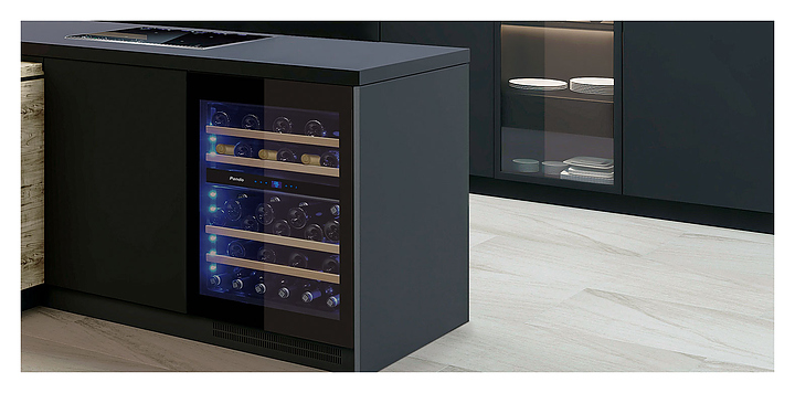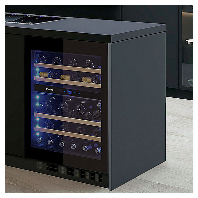 Винный шкаф Pando PVMBP 60-44CRL W предназначен для хранения при оптимальных условиях и предпродажной демонстрации бутилированного вина различных сортов в барах, ресторанах, специализированных магазинах, подсобных складских помещениях, а также домашних условиях. Модель оснащена холодильной камерой с 2 температурными зонами, левосторонней распашной дверью, внутренней сенсорной панелью управления и жидкокристаллическим дисплеем с белой подсветкой индикации. Корпус выполнен из стали с антикоррозийным покрытием черного цвета, дверь с полным фронтальным остеклением без винтового крепежа из закаленного стекла с прозрачной дымчатой тонировкой, внутренняя облицовка камеры черного цвета, полки – из массива буковой древесины. В комплект поставки входят 4 съемные полки с направляющими для размещения бутылок, инструкция по эксплуатации, гарантийный талон и заводская упаковка. Особенности: