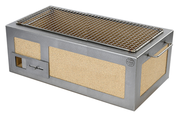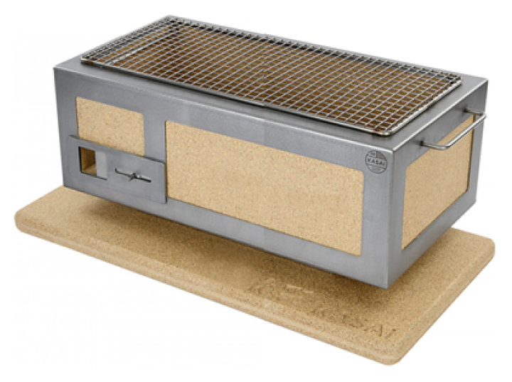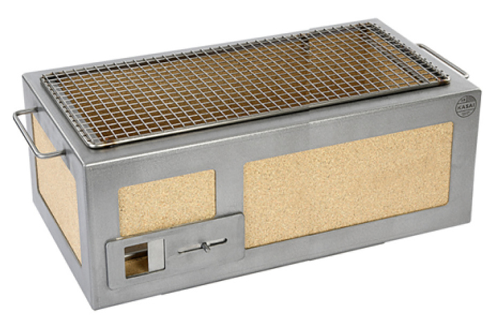 Японский гриль Kasai Medium Long предназначен для приготовления блюд на древесном угле в частных домах и на предприятиях общественного питания. Рама, ручки и решетка выполнены из нержавеющей стали V2, корпус - из огнеупорной керамики. В комплект поставки входит решетка для приготовления. Особенности: