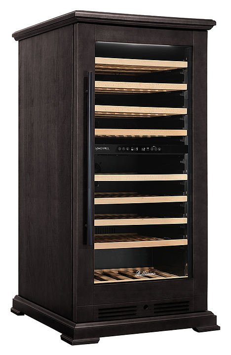 Винный шкаф MEYVEL MV99PRO-KBT2 предназначен для демонстрации, хранения и создания оптимальных условий для сохранения всех вкусовых свойств вина в бутылках на предприятиях общественного питания, торговли, в барах, ресторанах, специализированных магазинах, частных домах или квартирах. Модель оснащена интуитивно-понятной сенсорной панелью управления, электронным термостатом и внутренней светодиодной подсветкой. Корпус выполнен из стали с обшивкой из натурального шпона бука, дверь - из тройного стекла с УФ защитой, полки - из массива бука. Особенности: