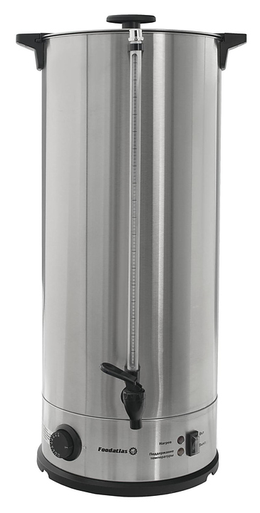 Электрокипятильник Foodatlas WB-30L используется на предприятиях общественного питания и торговли для нагрева воды и последующего поддержания заданной температуры. Встроенная защита от перегрева и автоматическое отключение гарантируют безопасное использование. Модель оснащена краном для розлива и крышкой с рукояткой. Корпус выполнен из высококачественной нержавеющей стали, отличающейся прочностью, долговечностью и устойчивостью к коррозии. Особенности: