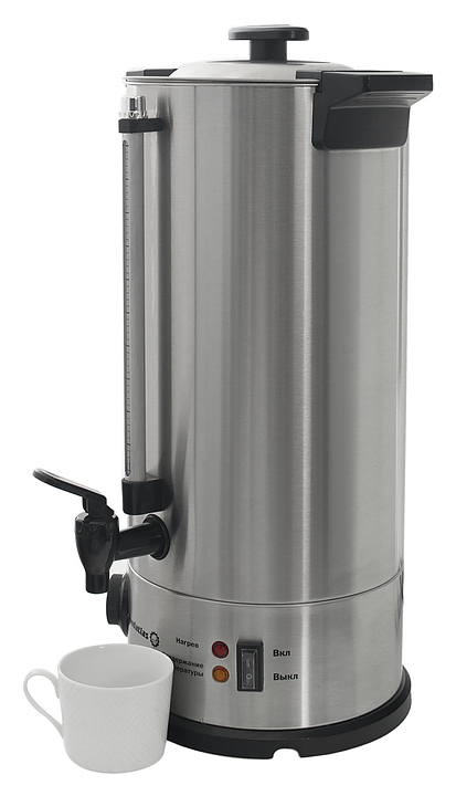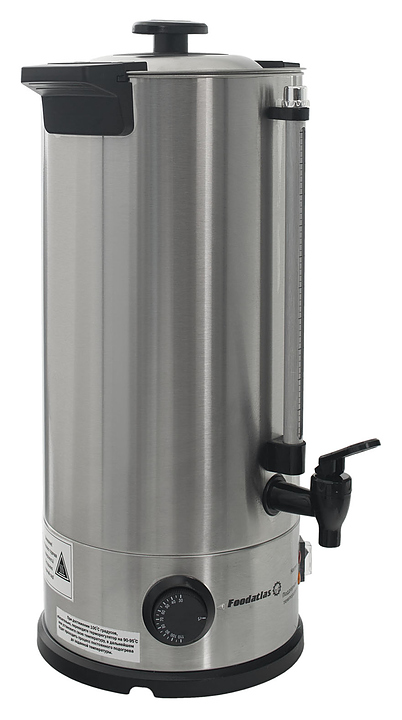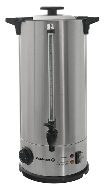 Электрокипятильник Foodatlas WB-10L используется на предприятиях общественного питания и торговли для нагрева воды и последующего поддержания заданной температуры. Встроенная защита от перегрева и автоматическое отключение гарантируют безопасное использование. Модель оснащена краном для розлива и крышкой с рукояткой. Корпус выполнен из высококачественной нержавеющей стали, отличающейся прочностью, долговечностью и устойчивостью к коррозии. Особенности: