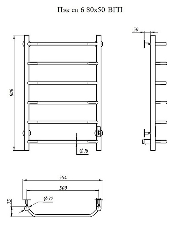 Полотенцесушитель электрический Тругор Пэк сп 6 80х50 см, черный