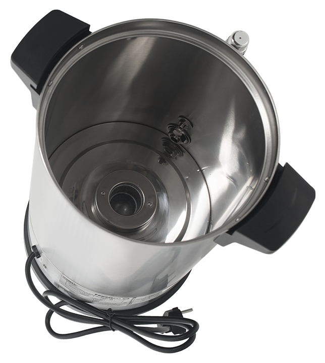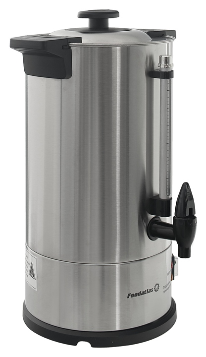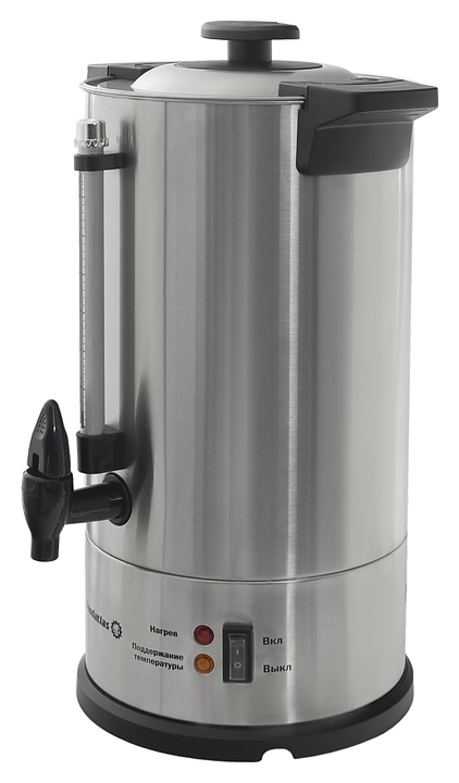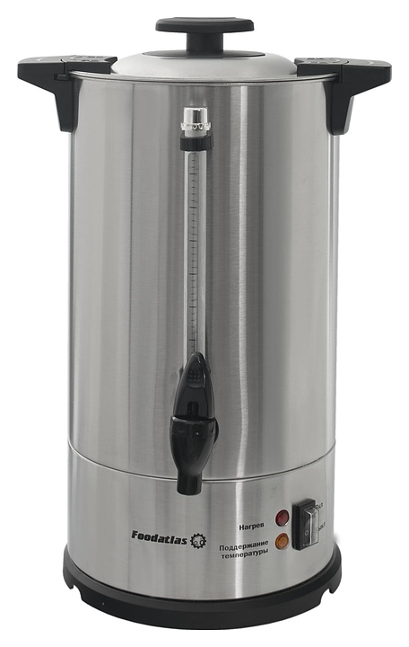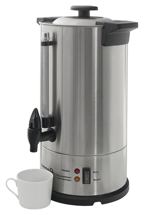 Кофеварка-перколятор Foodatlas WB-DWC10L предназначен для подогрева воды и приготовления горячих напитков на предприятиях общественного питания и торговли, а также в домашних условиях. Модель оснащена кабелем питания с вилкой, краном для розлива, крышкой с грибовидной рукояткой, боковыми транспортировочными рукоятками и электромеханическим управлением. Корпус цилиндрической формы, крышка и фильтр выполнены из высококачественной нержавеющей стали, фурнитура – из черного пластика, упаковка – картонная коробка. В комплект поставки входит фильтр для заваривания кофе или чая. Особенности: