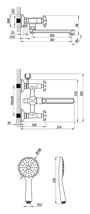 Смеситель для ванны и душа LEMARK Practica LM7513C предназначен для использования в ванных помещениях для подачи горячей и холодной воды. Модель оснащена плоским поворотным изливом с аэратором, который создает мягкую ровную струю без разбрызгивания, душевым гарнитуром, включающим в себя однорежимную душевую лейку, крепление и душевой шланг, а также керамической кран-буксой, обеспечивающей плавный ход вентилей и бесшумное смешивание воды. Изделие выполнено из высококачественной латуни, отличающейся прочностью, долговечностью и устойчивостью к перепадам температур. В комплект поставки входят смеситель, душевой шланг, душевая лейка, аэратор и присоединительная группа для настенного крепления. Особенности: