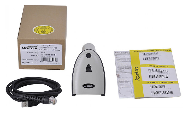 Сканер штрих-кода Mertech 2210 SUPERLEAD P2D USB White 3 m cable