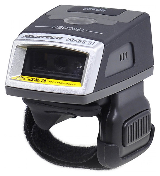 Cканер-кольцо штрих-кода Mertech Mark3 используется на предприятиях торговли и услуг для быстрой идентификации товара. Модель оснащена ремнем для фиксации на указательном пальце оператора, что позволяет использовать сканер, не держа его в ладони. Оператор может перекладывать товар двумя руками для повышения производительности труда. Сканер считывает маркировку со сложных поверхностей. Корпус выполнен из поликарбоната с добавлениями. Особенности: