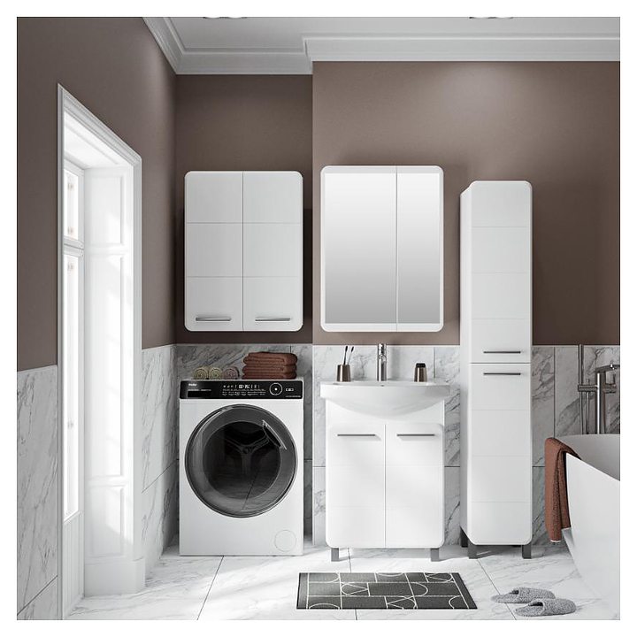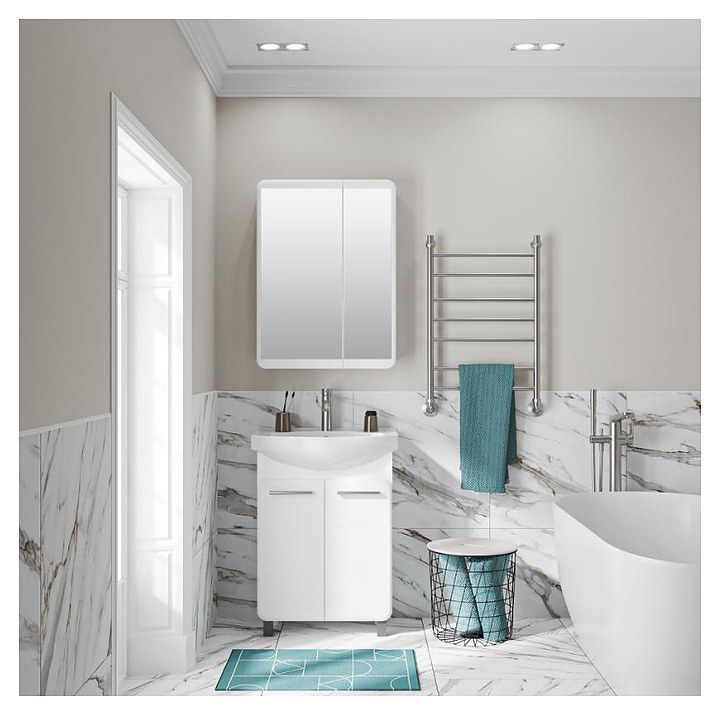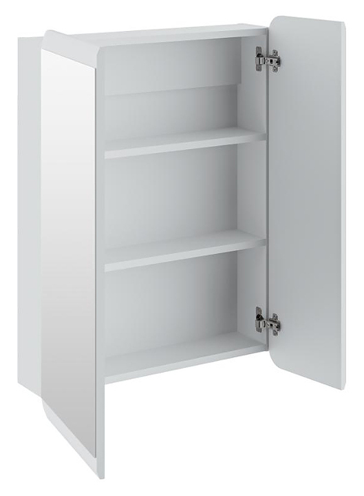 Зеркальный шкаф Runo Эрика 60 дополнит интерьер любой ванной комнаты. Благодаря подвесной конструкции модель не занимает много места и позволяет экономить пространство. Модель оснащена 2 распашными дверцами, 2 полками внутри и петлями со встроенным доводчиком. Корпус выполнен из ЛДСП, фасад - из МДФ с пленкой ПВХ. Дополнительные характеристики: