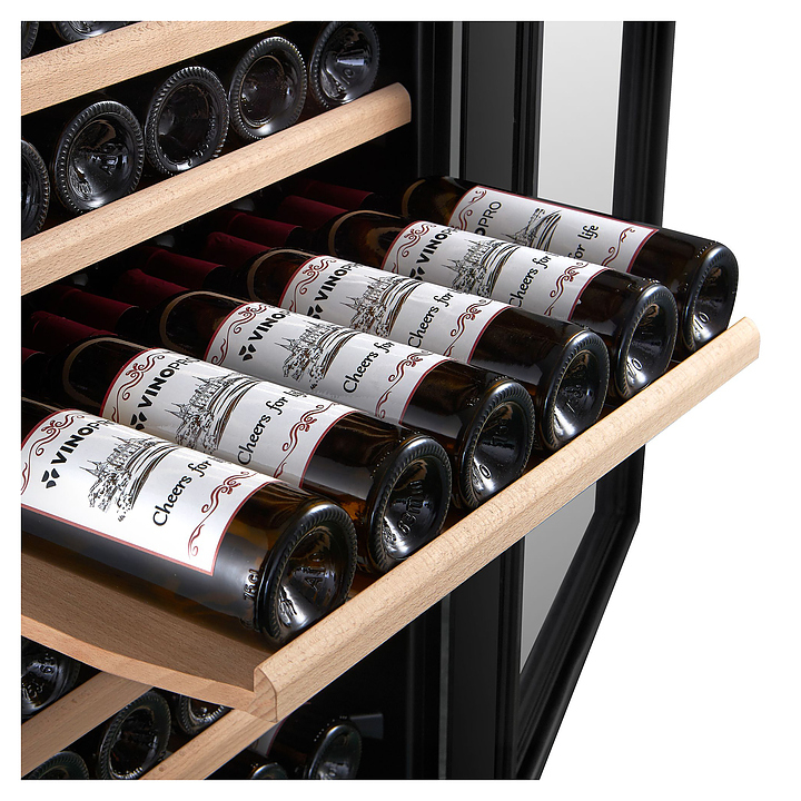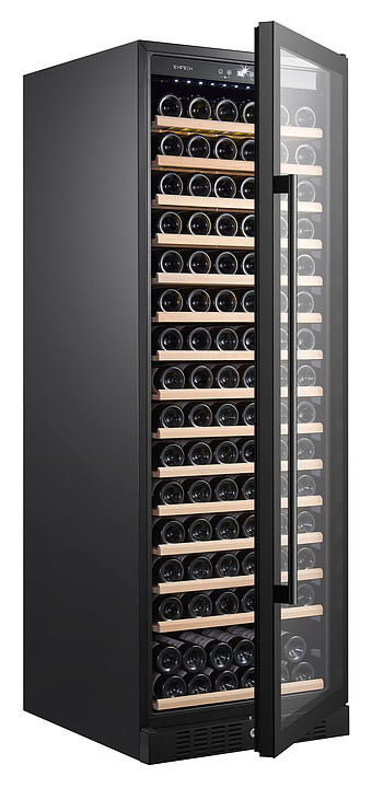 Винный шкаф Temptech Classique CL180SB предназначен для охлаждения, хранения и демонстрации бутилированного вина в отелях, винных магазинах, на предприятиях общественного питания и торговли. Модель оснащена сенсорной панелью с цифровым дисплеем, 15 выдвижными полками, дверью с замком и белой светодиодной подсветкой. Дверца выполнена из двухслойного стекла с УФ-фильтром, передняя панель - из черного стекла, полки - из натурального бука без обработки химикатами. Особенности: