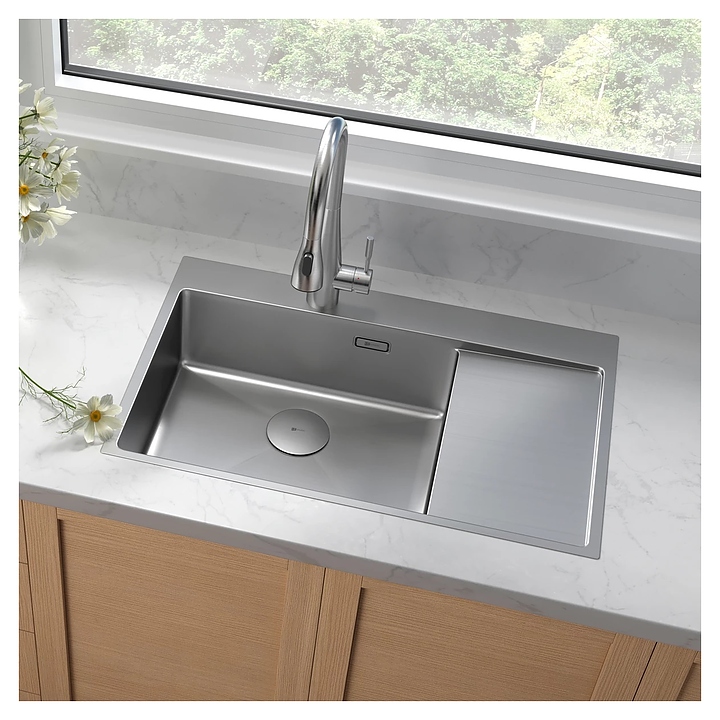 Кухонная мойка Lemark KEZADRA 780L предназначена для рационального планирования рабочего места на кухне. Изделие выполнено из нержавеющей стали серии Ozera, которая выдерживает колебания температуры, имеет высокую прочность и стойкость к пищевым и химическим красителям, а также защиту от вибраций и шума. В комплект поставки входят набор сливной арматуры с прямоугольным переливом и сифон для подключения посудомоечных и стиральных машин, донный клапан, перелив, декоративный элемент для выпуска и комплект креплений для монтажа к столешнице различными способами. Особенности: