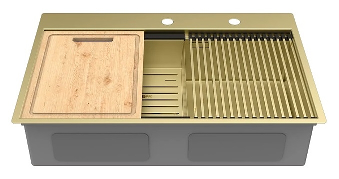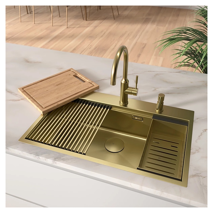 Мойка кухонная с аксессуарами LEMARK IORDANA 780 светлое золото
