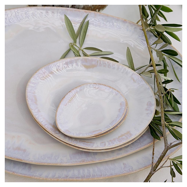 Тарелка Costa Nova GOP271-SAL(GOP271-00918R) коллекции Brisa используется в барах, ресторанах, на других предприятиях общественного питания и в домашних условиях для подачи различных блюд. Емкость овальной формы оснащена плавно расширенным к кромке бортом. Изделие выполнено из высококачественной керамики с текстурной поверхностью в белой цветовой гамме Sal и коричневым кантом на кромке. Цена указана за 1 шт. Особенности: