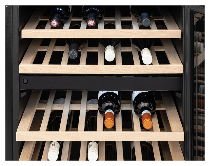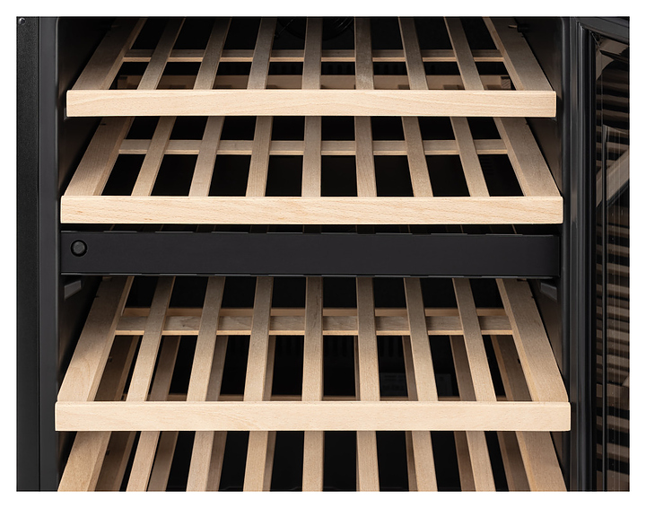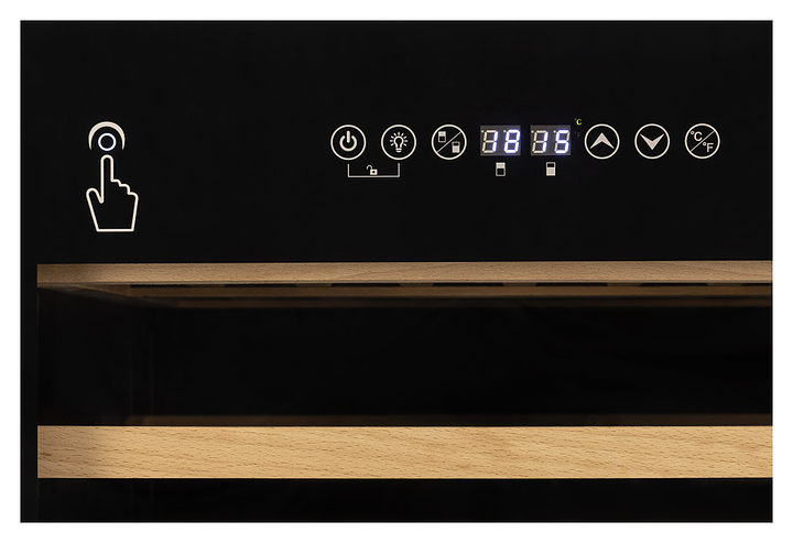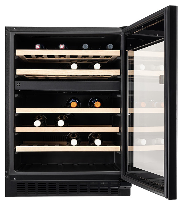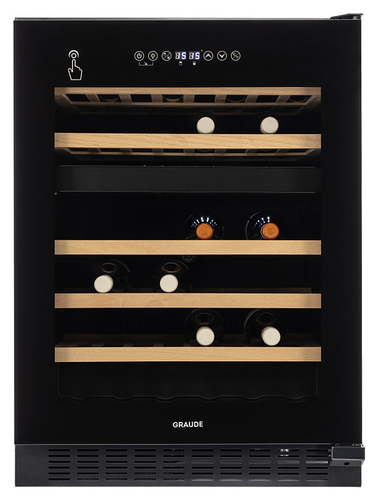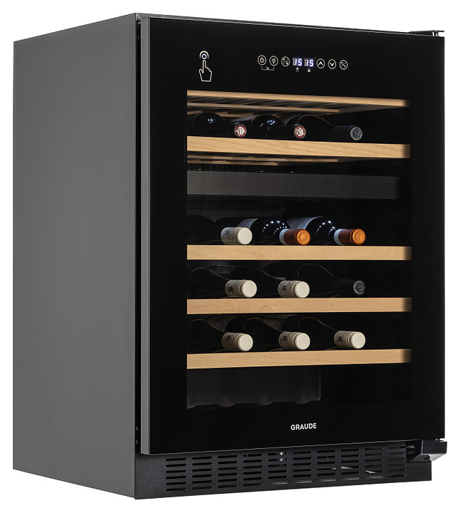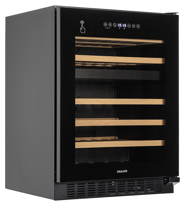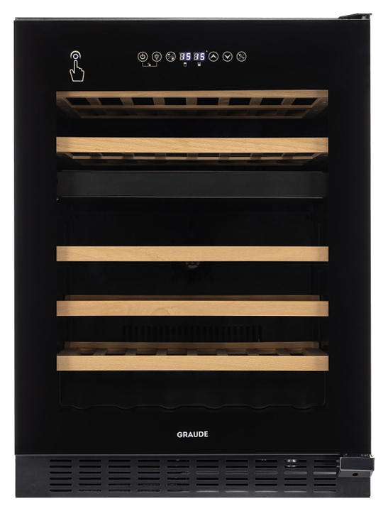 Винный шкаф Graude FWK 80.2 предназначен для хранения при оптимальных условиях и предпродажной демонстрации бутилированного вина различных сортов в барах, ресторанах, специализированных магазинах, подсобных складских помещениях, а также домашних условиях. Модель оснащена холодильной камерой с 2 температурными зонами, правосторонней распашной дверью, расположенной внутри камеры панелью управления с функциональными сенсорными клавишами и 2 жидкокристаллическими дисплеями с голубой подсветкой индикации. Корпус выполнен из стали с антикоррозийным покрытием черного цвета, дверь с полным фронтальным остеклением без винтового крепежа из прозрачного закаленного стекла, внутренняя облицовка камеры черного цвета, полки – из массива буковой древесины. В комплект поставки входят 5 съемных полок с направляющими для размещения бутылок, инструкция по эксплуатации, гарантийный талон и заводская упаковка. Особенности: