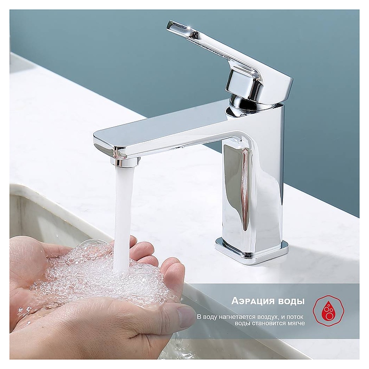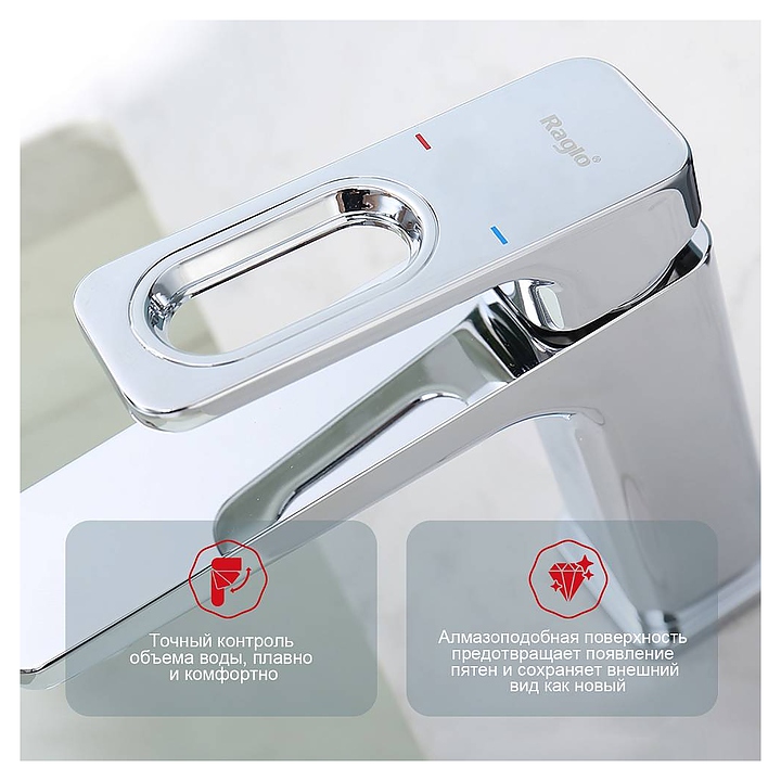 Смеситель для раковины Raglo R51.10 предназначен для подачи горячей и холодной воды в ванных помещениях. Модель оснащена керамическим картриджем, который обеспечивает плавный ход рычага смесителя, контроль и точность при выборе напора и температуры воды. Встроенный аэратор создает мягкую струю без брызг. Корпус выполнен из высококачественной латуни, отличающейся прочностью, долговечностью и устойчивостью к перепадам температуры, аэратор - из силикона. Особенности: