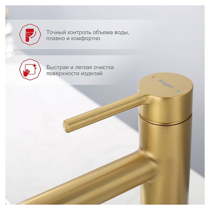 Смеситель для раковины Raglo R20.10.03 предназначен для подачи горячей и холодной воды в ванных помещениях. Модель оснащена керамическим картриджем, который обеспечивает плавный ход рычага смесителя, контроль и точность при выборе напора и температуры воды. Встроенный аэратор создает мягкую струю без брызг. Корпус выполнен из высококачественной латуни, отличающейся прочностью, долговечностью и устойчивостью к перепадам температуры, аэратор - из силикона. В комплект поставки входят смеситель и подводка. Особенности: